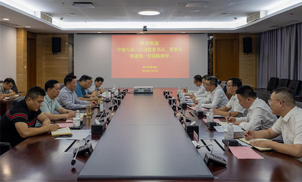 中建八局三公司黨委書(shū)記、董事長(zhǎng)張述堅(jiān)一行來(lái)集團(tuán)座談交流