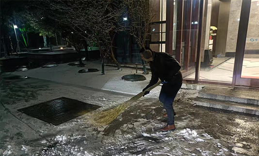 12月18日,新灘鄰里中心迎來2023年的第一場降雪,雪景雖美,但積雪和降溫結(jié)冰也帶來了安全隱患。為全力做好雨雪天氣安全防范工作,保障園區(qū)出行安全,悅新物業(yè)立即組織人員對園區(qū)橋2023-12-19 -